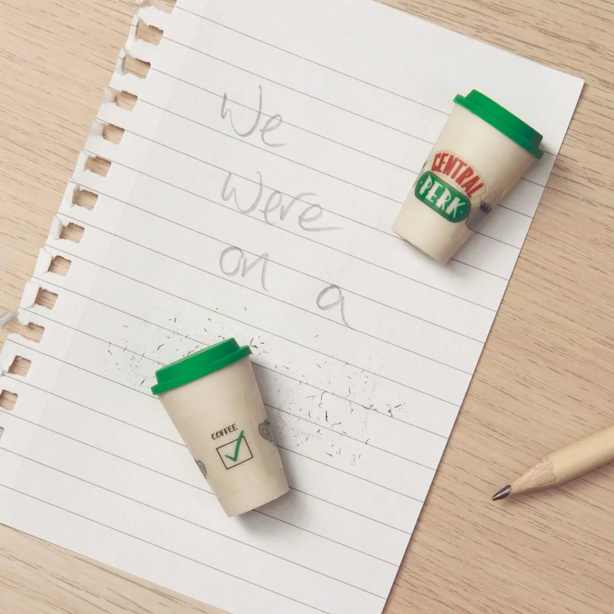Jeśli siedząc przy biurku zdarza ci się przysnąć to gumki o zapachu kawy or razu cię wybudzą. Gumki znajdują się w zamykanym opakowaniu w kształcie kubka podróżnego Central Perk.